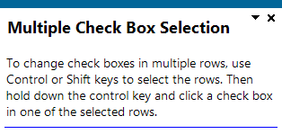 This message indicates that the program has a listview with check box columns and that the Multiple Row Selection feature is enabled (i.e. you can select multiple rows in the listview by using the Ctrl or Shift key and then click on the check box for any selected row to apply that check to all the highlighted rows).
