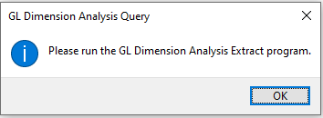 You must run the GL Dimension Analysis Extract program first to extract the dimension data before accessing this program.