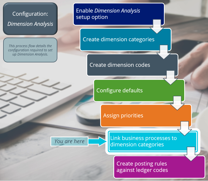 Once this link is established and a transaction originates within the business process, the transaction is then tagged with dimension analysis.