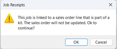 Using the WIP Inspection or Job Receipts program to accept an item into stock for a job linked to a sales order for which a delivery note has already been printed.