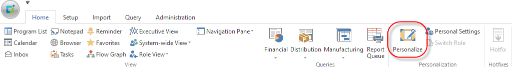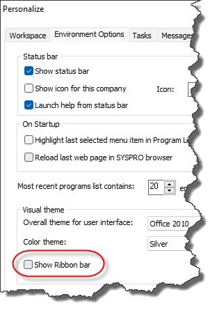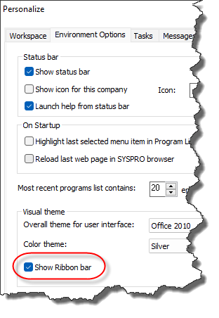 You control how to display SYSPRO's Ribbon bar using the Personalize program (run from the main menu).