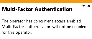 This message is therefore displayed if you attempt to enable Multi-Factor Authentication for an operator that is currently defined to use concurrent logins.