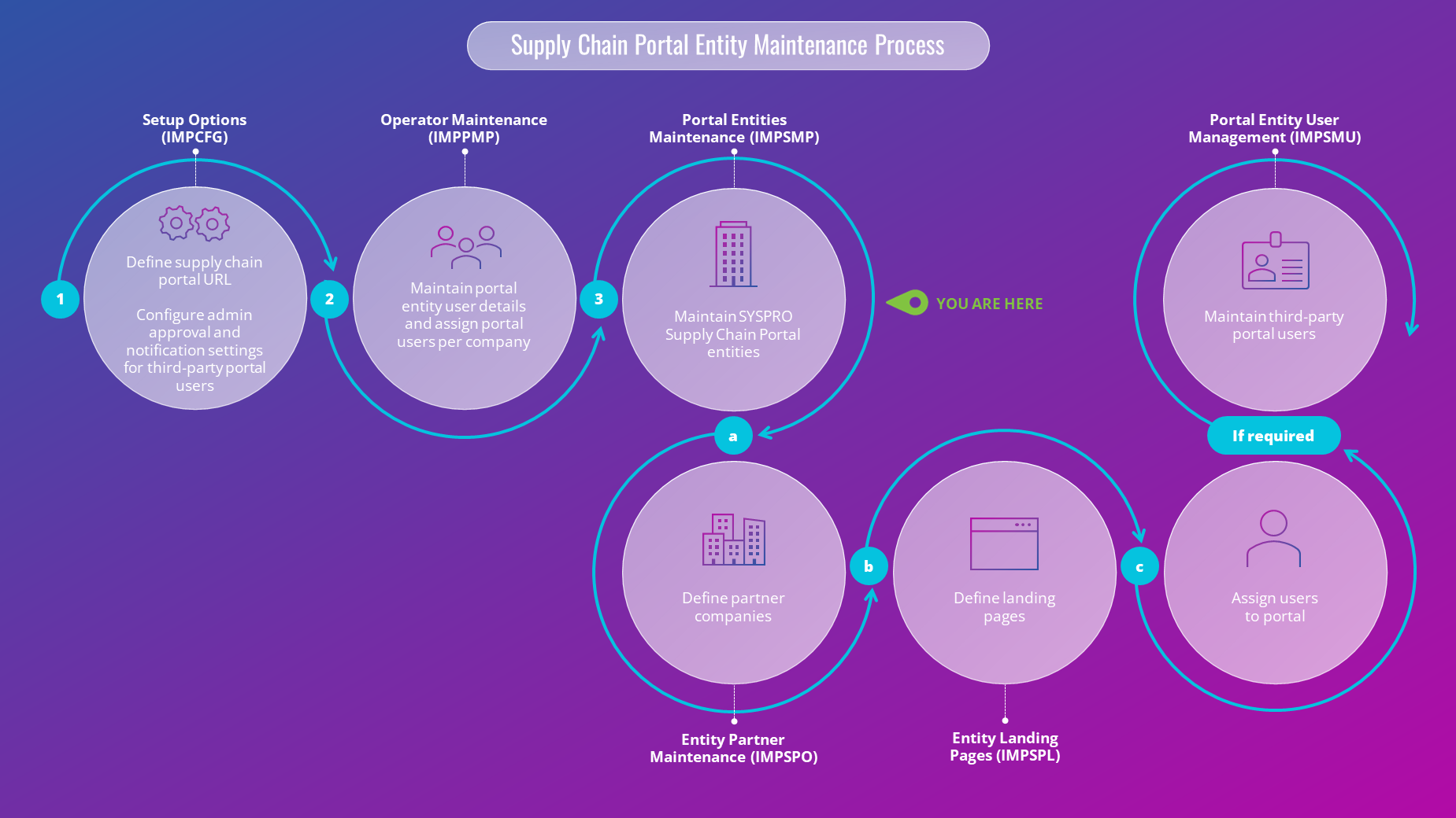 The following depicts the process required to set up Syspro Supply Chain Portal entities: