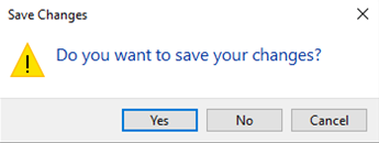 Select Yes to save the changes and close the window. Alternatively, select No to close without saving, or Cancel to continue maintenance.
