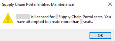 This message is displayed if you attempt to maintain partners before saving any changes to entities, descriptions, seats, administrator approval, customers or suppliers.