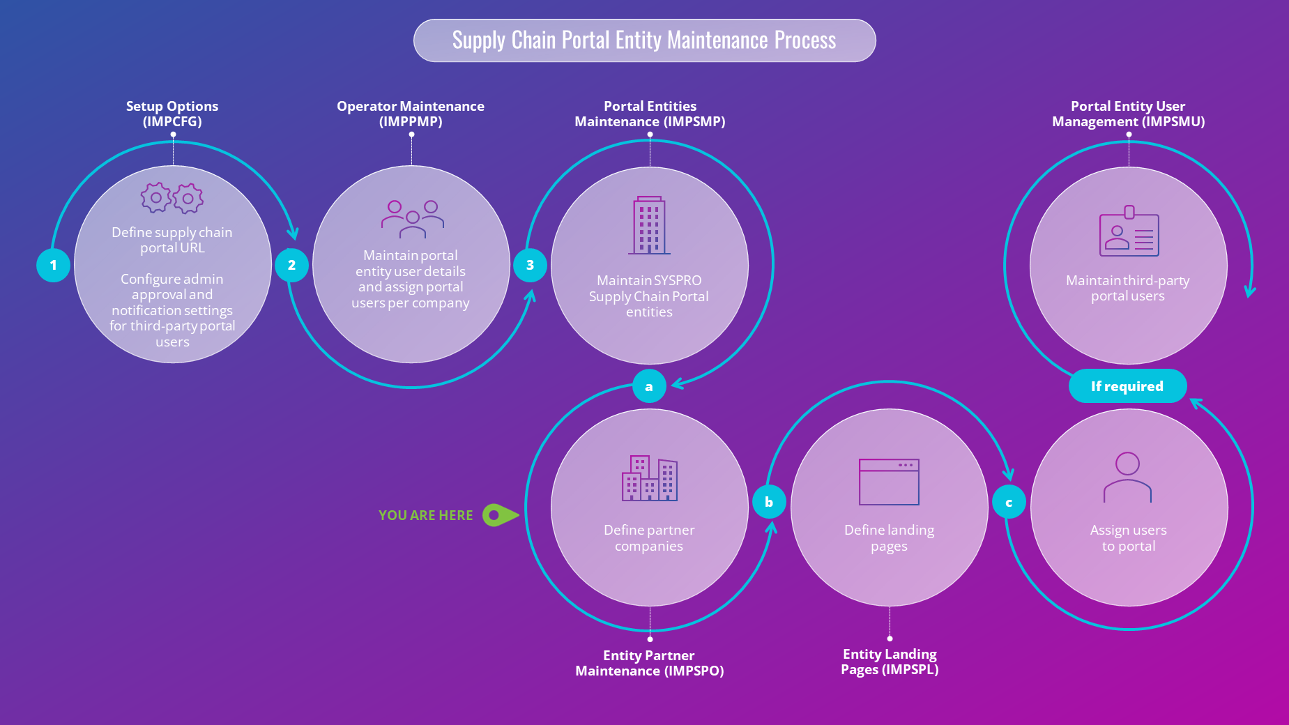 The following depicts the process required to set up Syspro Supply Chain Portal entities: