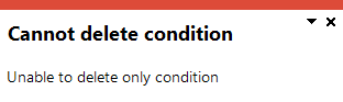 This message is displayed when you select the Delete hyperlink against a transaction condition within the Transactions listview of the Electronic Signature Transaction Setup program, if there is only one condition currently defined against the transaction.