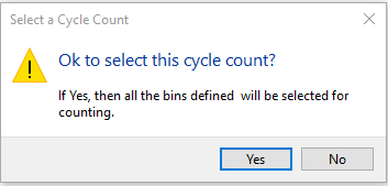 Select Yes to activate the cycle count or select No to return to the Cycle Counts window without activating the cycle count.