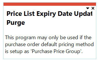 Ensure that the Default pricing method for entry setup option is defined as Purchase Price Group within the Setup Options (Syspro Ribbon bar > Setup > Setup Options > Preferences) before attempting to use any of the Purchase Pricing Engine programs.