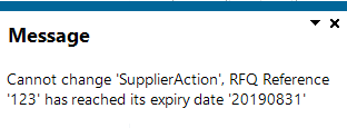 This indicates the date by which quotations must be submitted. To prevent fraud the closing date of an RFQ can't be changed after the RFQ is ended and submitted to suppliers for bidding. |