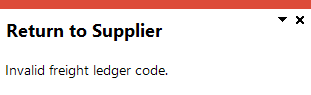 This message is displayed when you try to save an RTS in the RTS Maintenance program, or process an RTS in the RTS Review program, but the Freight ledger code is either not defined or invalid.