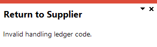 | Non-stocked ledger code | This indicates the ledger code that is used when non-stocked goods are returned to the supplier. |