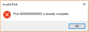 This error is displayed if you attempt to add a sales order line to an already completed pick using either of the following programs: