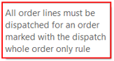 Select this to dispatch by ship address line. This applies if you are using multiple addresses per line in the Sales Order Entry program. When you select this option, the address code is added to the sequencing criteria after the order number and before the line number (i.e. the order lines are displayed by order number - address code - line number). This means that a separate dispatch note is produced for each address code on the order. The address defined by the address code of the order line is placed in the dispatch note header. Associated comments and miscellaneous lines are included on the dispatch note with merchandise lines. Free standing comments, freight and miscellaneous lines are added to the appropriate dispatch note according to the Comment line processing setup option selected. This option is selected by default and cannot be deselected when you access the Dispatch Note Review program from the Dispatch Note function on the End Order screen of the Sales Order Entry program. |