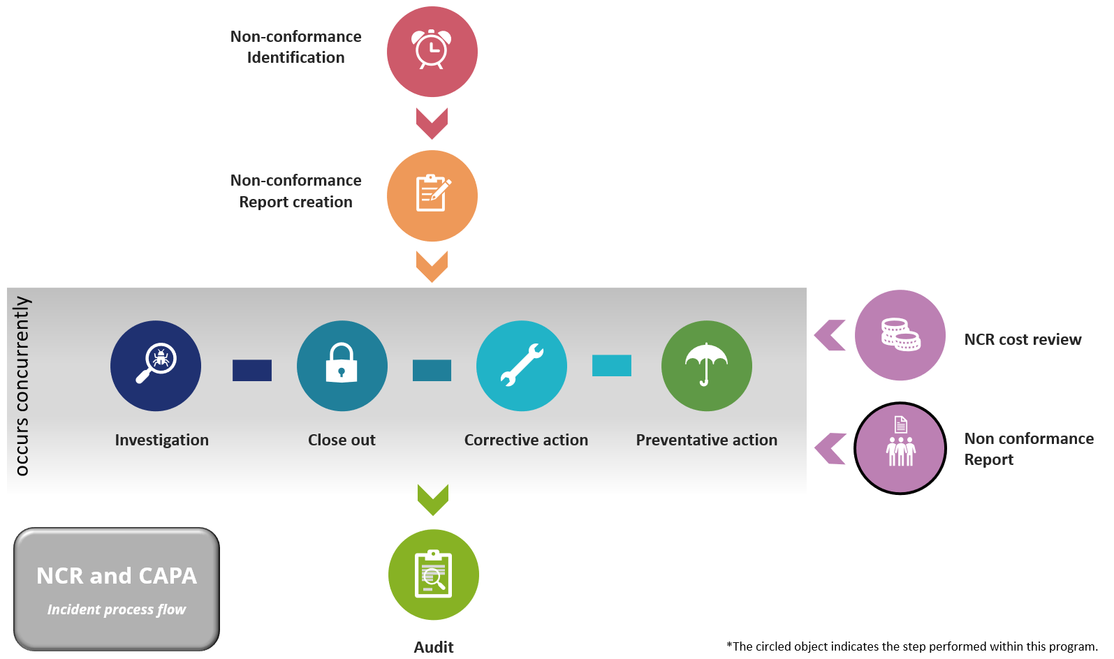 The Non Conformance Cost Review program can be used throughout the process to report on costs relating to the non-conformance incident.