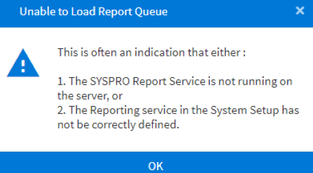 This message is displayed when attempting to process your report in Syspro Web UI (Avanti) if any of the following apply: