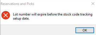 The lot expiry date is verified according to your selection at the Check expired lots based on setup option within the Stock Code Maintenance program.