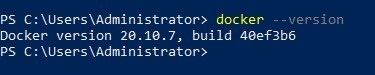 Confirm the Docker’s installed version by using the following command in Windows PowerShell: