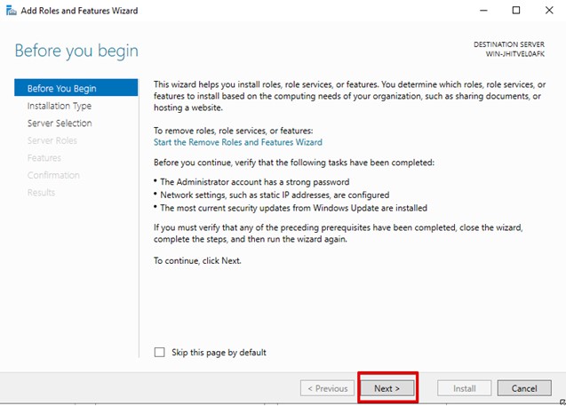 Once the wizard has launched, verify the prerequisites within the Before you begin screen: