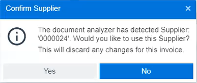 This message is displayed once you have uploaded a document at the Document Analyzer pane within the AP Invoice Posting program and the system detected a supplier.