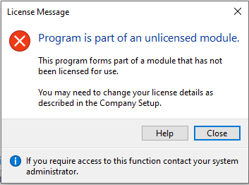 This message is displayed when you have attempted to access the EFT File Format Maintenance program, but your system is not configured to use the Electronic Funds Interface module.