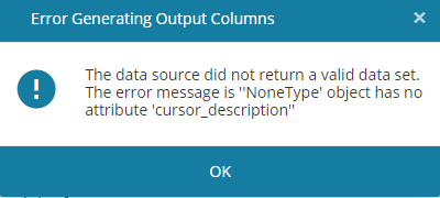 This message is displayed when you save an AI project in the Syspro Machine Learning program if the SQL select statement returns only one or zero rows of data.