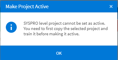 This message is displayed when you attempt to activate a project that hasn't been trained yet.