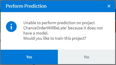 This message is displayed when you attempt to perform a prediction on a project that hasn't been trained yet.