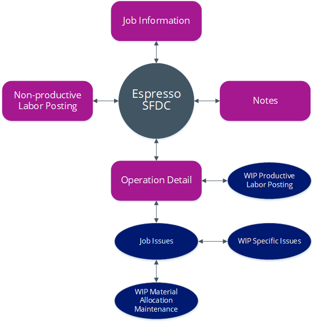 The Espresso SFDC (Shop Floor Data Collection) Workbench provides a mobile solution for capturing all production-related transactions directly from the shop floor.