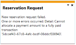 In some cases, a Reservation Request error may be displayed after selecting Yes to create a transaction. Please refer to the workaround for steps to resolve this.