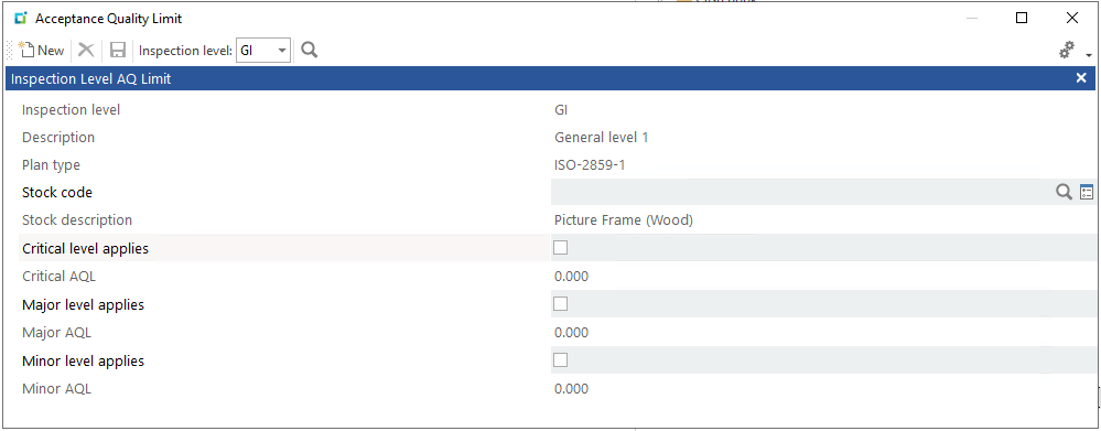 Configure the AQL levels using the Acceptance Quality Limit program.
