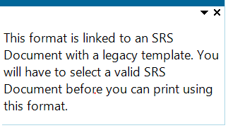This message is displayed if you attempt printing a document that is linked to a legacy template.
