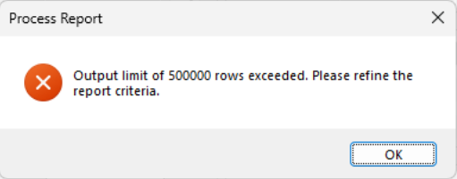 The limit can be configured at the Maximum rows per report setup option (Setup Options > System Setup > Legacy Reporting).