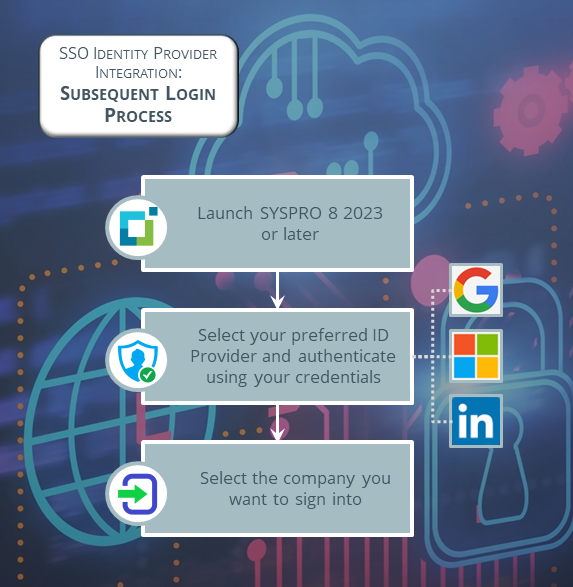 Once authenticated, Syspro users are automatically logged in, without them having to enter the traditional Syspro username and password.